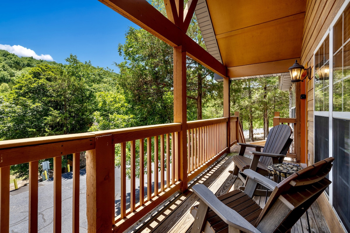 Welcome to The Tree + House at Indian Point! This custom luxury treehouse was built with comfort and relaxation in mind. Perfect for up to four guests, it’s surrounded by forest and filled with natural light from floor-to-ceiling windows that showcase stunning views of Table Rock Lake. You’ll feel tucked away in your own private retreat, yet still be just minutes from the water and Silver Dollar City. It’s the ideal mix of peaceful nature and modern style.