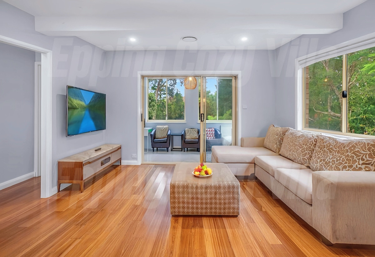 ✨Ketenangan Bertemu Kemudahan Kota✨ Merencanakan liburan singkat? Mulailah liburan Anda di tempat peristirahatan yang tenang dengan parkir di Epping. 9 menit berjalan kaki ke Stasiun Epping yang menawarkan akses mudah ke Sydney CBD dan sekitarnya. Mulailah hari Anda dengan berjalan-jalan menyegarkan di sekitar Lane Cove, hanya 14 menit dengan mobil. Nikmati makanan dan berbelanja di Macquarie Centre, hanya 8 menit berkendara. Bersantai dan berolahraga di Ryde Aquatic Leisure Centre setelah hari yang sibuk dengan berkendara sebentar. Cocok untuk pasangan atau keluarga yang menginginkan tempat peristirahatan yang damai
