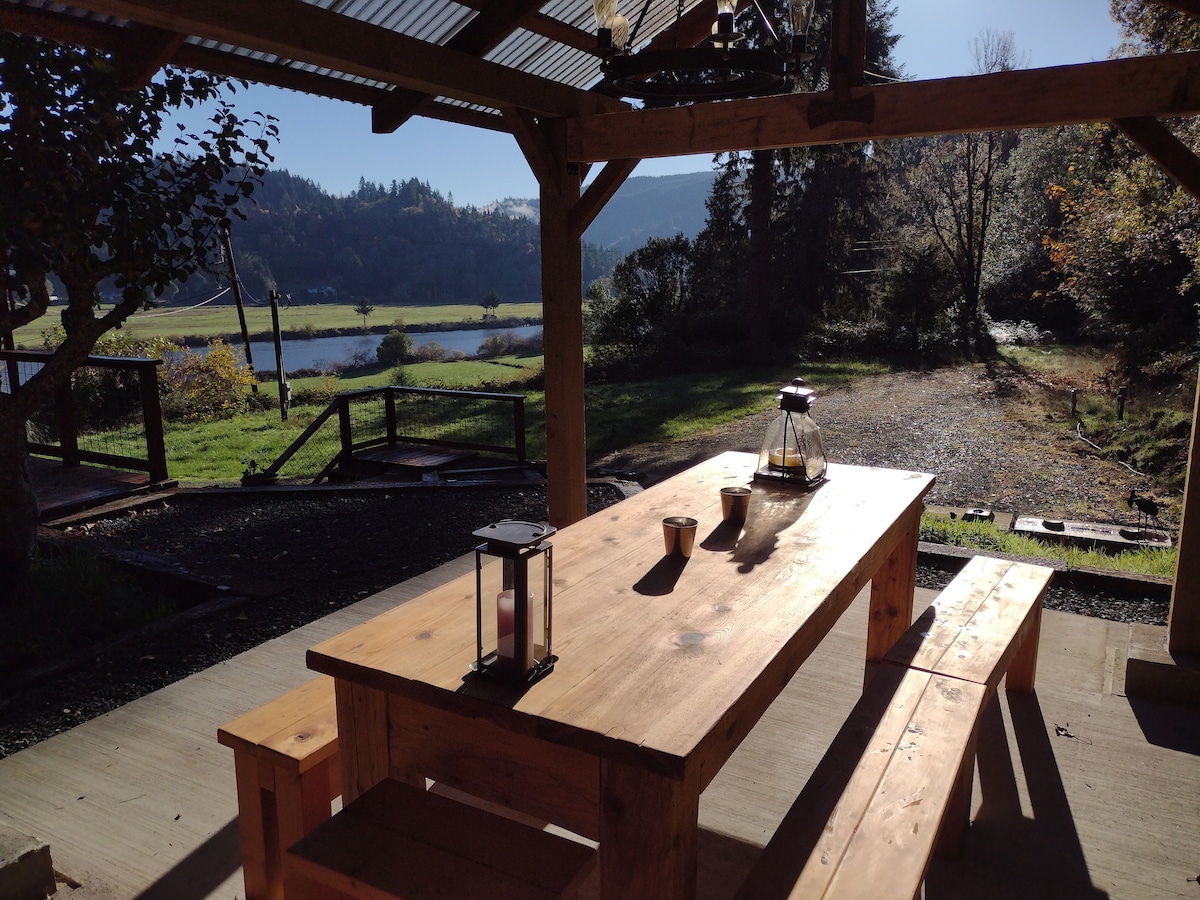 Bandon Cabin di Coquille River dengan pemandangan yang tidak terhalang.