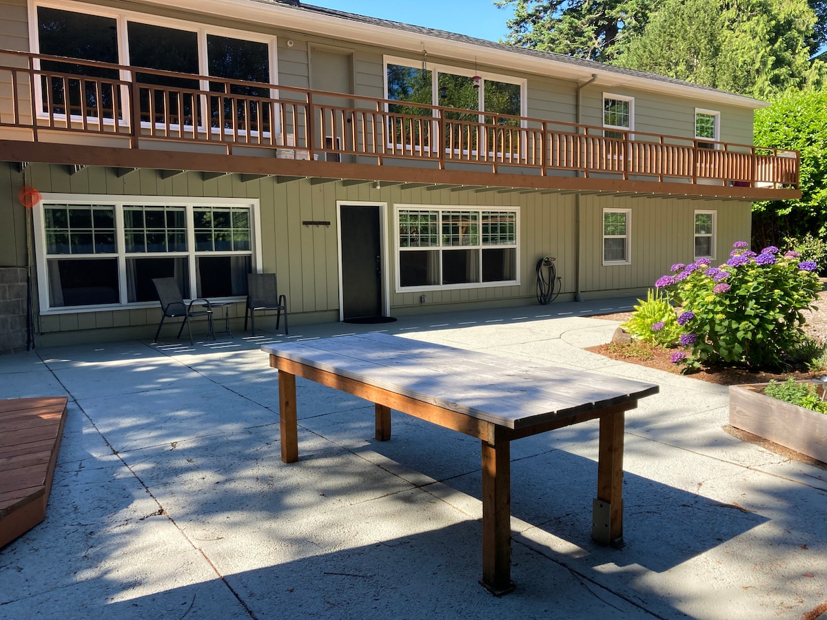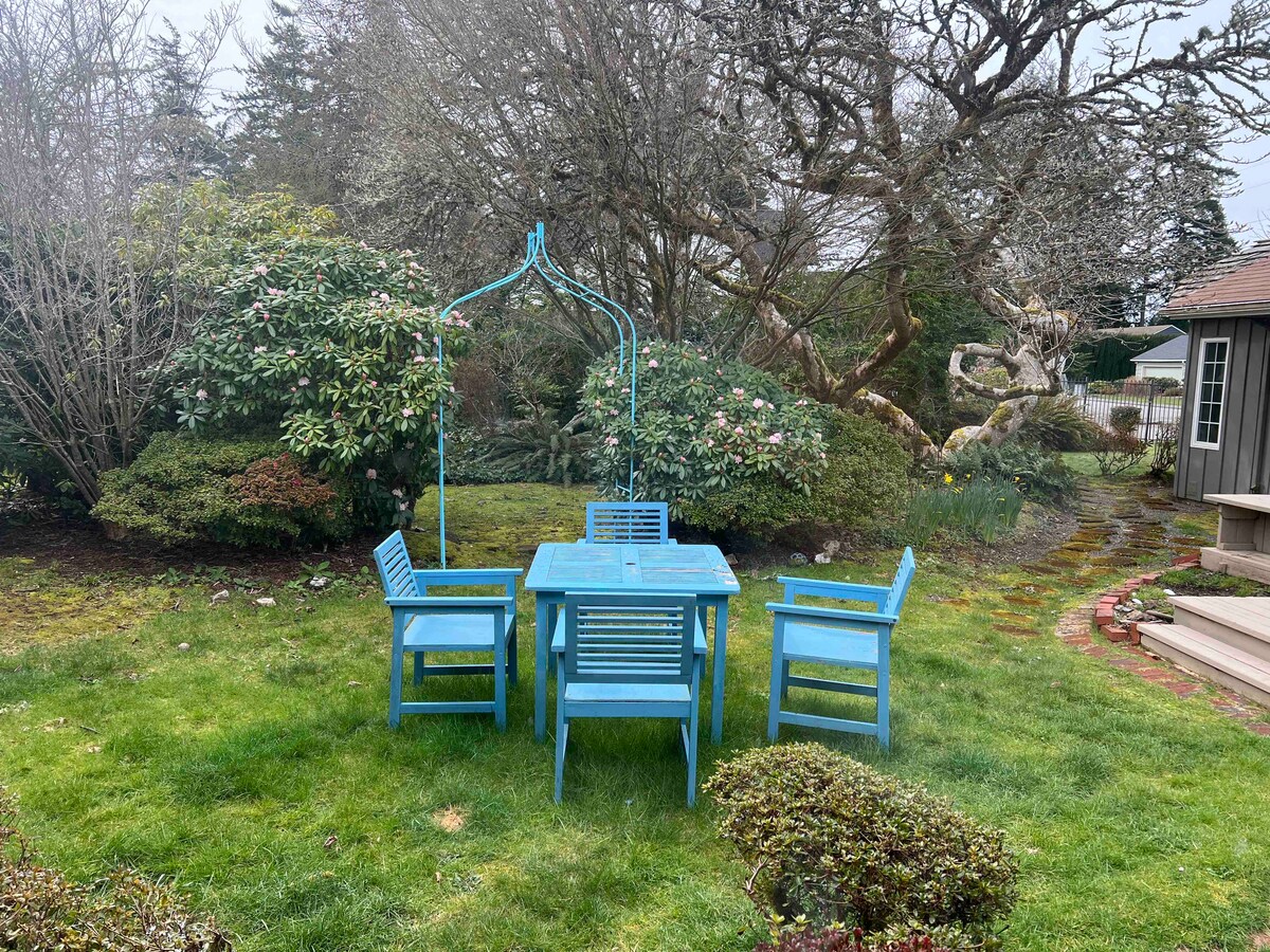 TIDAK ADA PENGUNJUNG TIDAK ADA HEWAN PELIHARAAN TIDAK MEROKOK Tenang dan terpencil, apartemen satu kamar tidur ini (810 kaki persegi) adalah tempat persembunyian yang sempurna bagi mereka yang menginginkan tempat yang damai untuk bersantai. Luas dan nyaman, dilengkapi dengan dapur, perlengkapan dasar, WiFi serat optik Ziply, TV Roku 55", perapian di halaman belakang, dan bak mandi air panas. Anda hanya berjarak satu atau dua mil dari Mingus Park, Coos Bay Waterfront, dan Mill Casino. Dan hanya 8 -12 mil dari pantai laut!