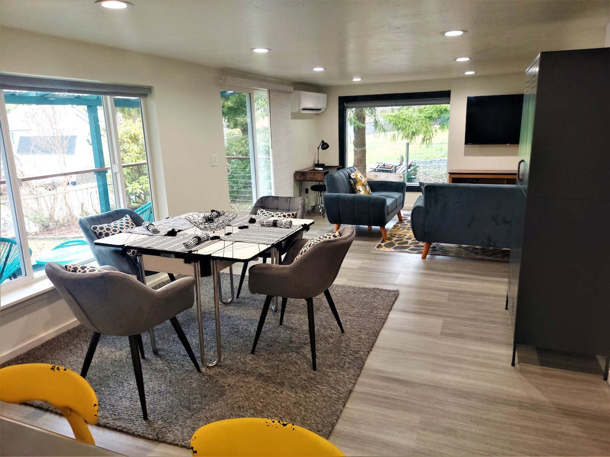 #StayinMyDistrict Downtown Coos Bay! Lingkungan perumahan yang asri dan tenang dekat dengan pusat kota Coos Bay Shopping, Dining & Entertainment. (6 -8 blok berjalan kaki). Suite 1 kamar tidur 1 kamar mandi ini menyediakan hingga (4). Nyaman & Nyaman dengan pesona vintage dan pembaruan modern menciptakan tempat menginap yang menyenangkan di Coos Bay. Perabotan lengkap, Kabel & WIFI, dapur lengkap, WD, dan tempat parkir GRATIS. Area luar ruangan & ramah anjing dengan pra - persetujuan.