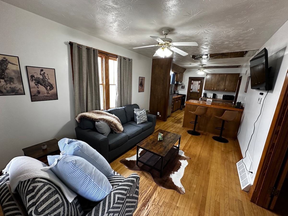 Dupleks di Dodge City Terletak di pusat kota dalam -5 menit dari semua tempat wisata/restoran! Pintu masuk pribadi. Ikuti jalur di sebelah kiri jalan masuk, melalui halaman samping dan turun tangga ke lantai bawah berjalan keluar. Kamar yang luas dan ruang tamu. - semuanya pribadi! Dapatkan heck ke Dodge!