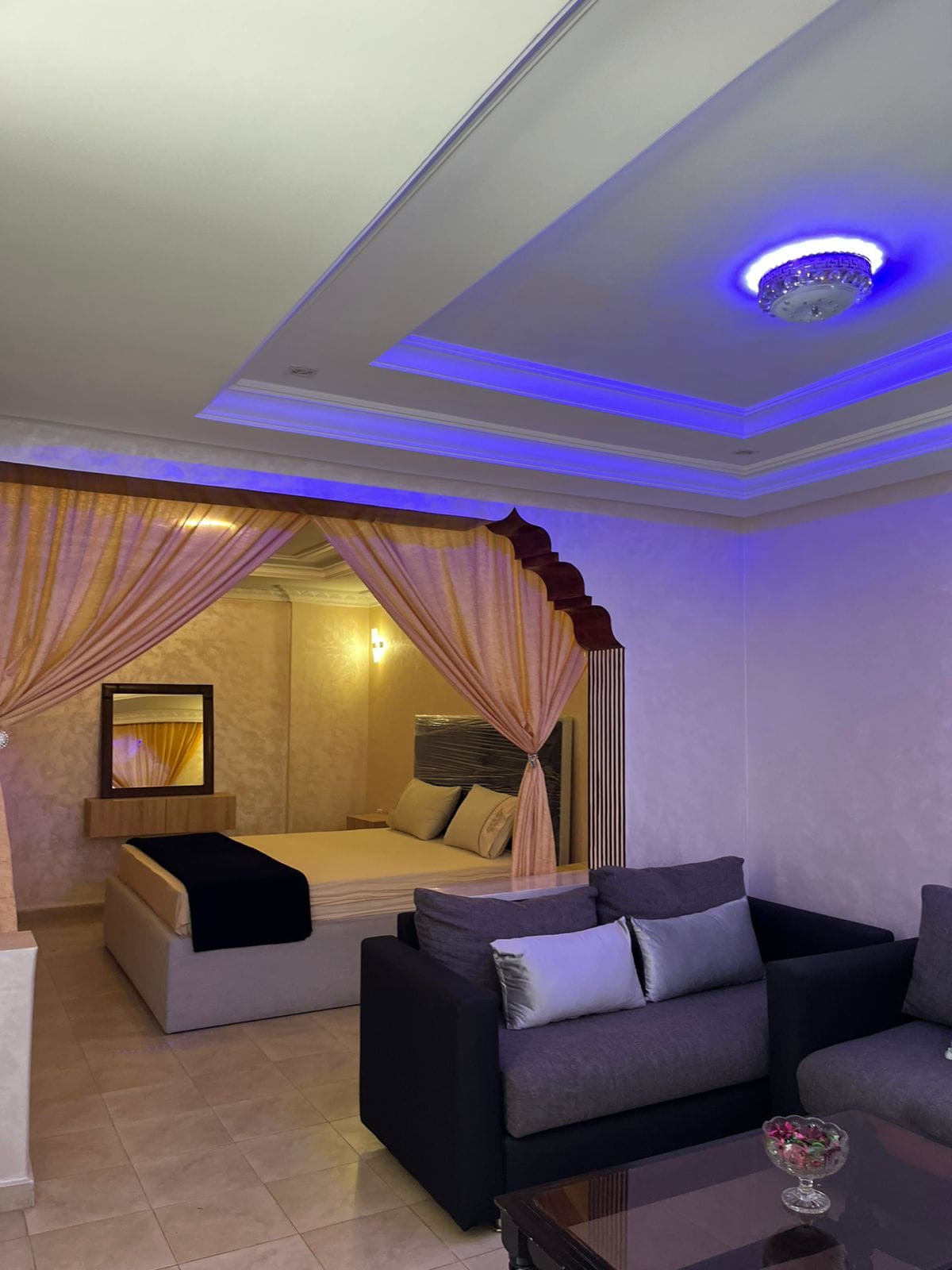 Nikmati apartemen 2 kamar tidur yang bergaya dan modern dengan kolam renang santai di lingkungan tinggal Wifaq yang tenang. Dengan tiga teras, ruang tamu yang luas, dan TV besar untuk Netflix & chill, rumah ini dirancang untuk kenyamanan. Dapur lengkap memiliki segala yang Anda butuhkan untuk memasak seperti koki. Hanya 10 menit dari Hay Riad, distrik paling bergengsi di Rabat dengan kafe dan butik, dan 5 menit dari pantai Harhoura, penginapan yang berlokasi strategis ini menawarkan perpaduan sempurna antara kenyamanan dan aksesibilitas!