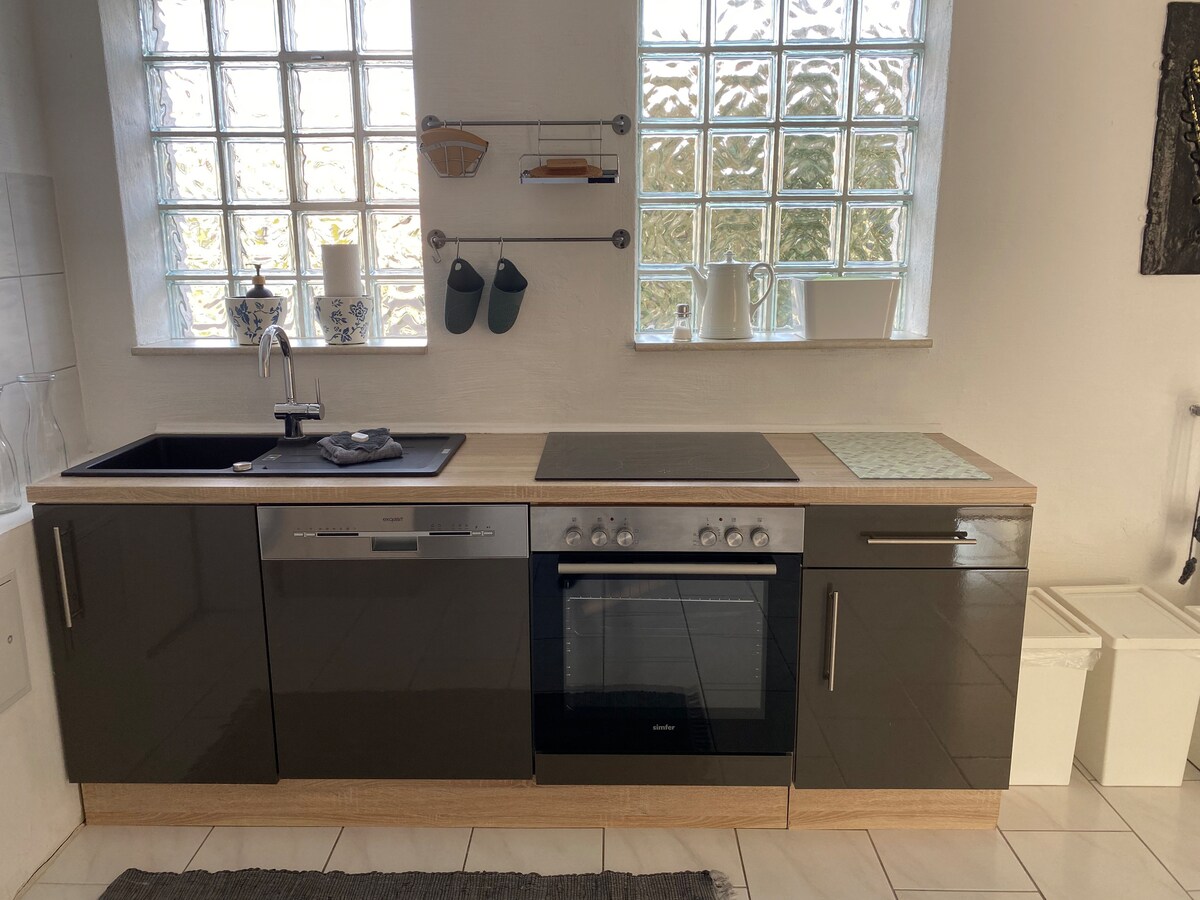 Die Ferienwohnung ist einfach, gemütlich, naturnah für 2 Erwachsene+Kleinkind+Hund Küche mit Esstisch für 4 Personen, Lesesessel, Backofen, Toaster, Kaffeemaschine, Wasserkocher, Koch-Ess-Grundausstattung, bioTee, bioFilterkaffee, bioÖl, bioEssig WohnSchlafraum Bad mit Dusche Balkon mit Gartenblick+Sitzgelegenheit Spirit of Om Bettwäsche+Handtücher Auf der gleichen Etage ist unser Sonnenzimmer. Wenn Ihr zu viert reist: Einfach dazu buchen. https://www.airbnb.com/slink/Loatly6i