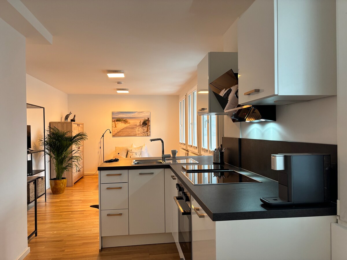 Selamat datang di oasis kami yang baru direnovasi! Di lokasi yang tenang dan sentral, ruang tamu berperabot bergaya menanti Anda dengan box spring bed besar dan TV 65 inci. Dapur lengkap, mengundang Anda untuk memasak. Bersantai di balkon atau segarkan diri di pancuran besar di kamar mandi modern. Pasar St. Johanner dan toko - toko kebutuhan sehari - hari berjarak 5 menit. Cocok untuk menginap tak terlupakan di Saarbrücken!
