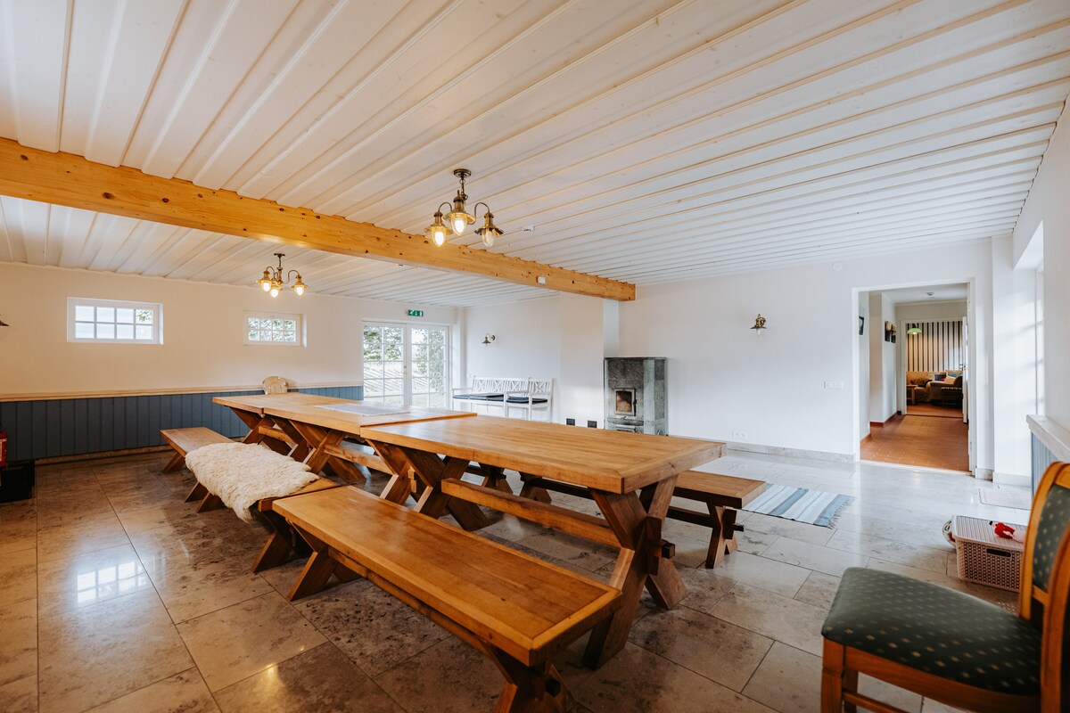Akomodasi di 2 kamar di Courtyard House (tempat tidur papan), 20 tempat tidur (10+10). Fasilitas dan layanan tambahan: Open Grill Atrium, kompor asap, lapangan bola, sauna, tong mandi berpemanas, sewa peralatan untuk aktivitas aktif. Harga 6 EUR/orang.