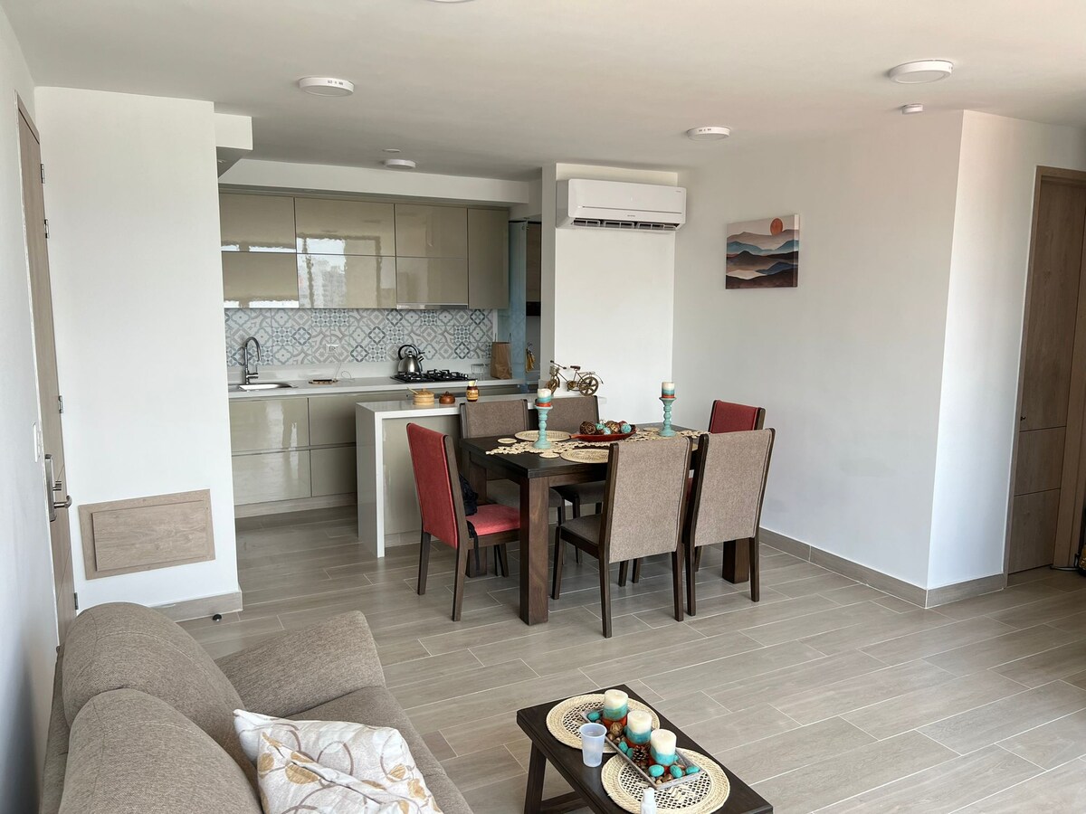 Apartemen modern berlokasi di salah satu lingkungan tinggal paling eksklusif di Barranquilla. * Check - in dan check - out fleksibel *1 kamar tidur dengan tempat tidur queen size dan AC. *Ruang tamu dengan sofa bed dan AC. * Dapur berfasilitas lengkap dengan peralatan makan, peralatan dasar dan mesin cuci. *Kolam renang, sauna, pemandian Turki, dan teras atap. * Pusat kebugaran Smartfit di dekatnya. *Parkir pribadi gratis. *Dekat dengan pusat perbelanjaan VIVA dan Buenavista, dan ke klinik utama dan kawasan wisata.