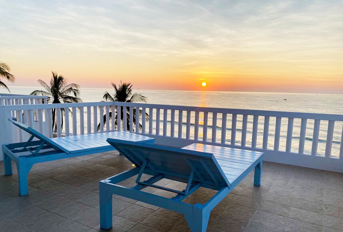 Nilai rata-rata 5 dari 5, 4 ulasan80 m ke pantai, teras besar dengan matahari terbit
