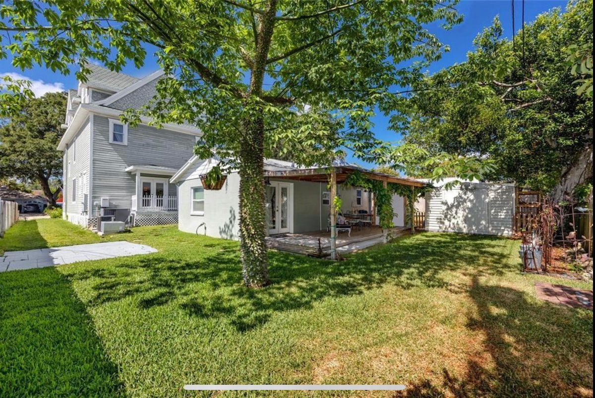 Selamat datang di pondok kecil saya di kota. Rumah ini didirikan pada tahun 1926 namun telah direnovasi sepenuhnya dengan gaya modern, sambil mempertahankan pesona rumah yang lebih tua. Meskipun dekat dengan semua yang ditawarkan Tampa, tempat ini masih memiliki nuansa lingkungan tinggal kecil yang tenang di dekat sungai. Ini liburan saya. Saya suka beranda depan untuk duduk - duduk dengan minuman dingin dan menyaksikan tetangga berjalan - jalan dengan mengajak anjing mereka berjalan - jalan. Taman sungai sangat dekat yang merupakan tempat berjalan kaki yang bagus dari pondok.
