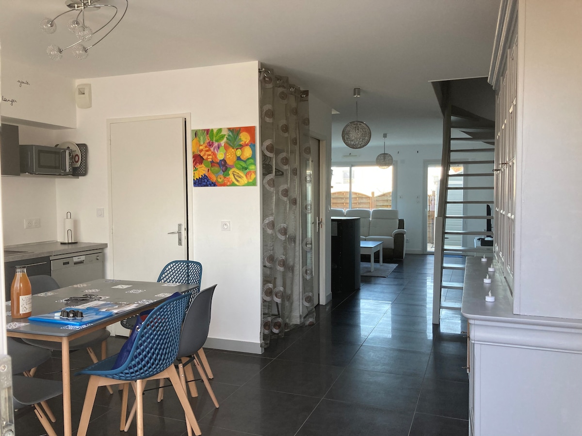 Rumah TEPI LAUT ini benar - benar direnovasi pada musim semi 2020: Isolasi listrik - lukisan - lantai apung pohon ek pirang 12mm - pemanas - kamar mandi termasuk pancuran 1MX1M - WC. Furnitur baru (140 tempat tidur + perlengkapan tempat tidur / meja + kursi / 4 kursi lengan + bantal + lemparan /meja trundle konvertibel/dapur pas + oven pirolisis + kompor induksi + kulkas - freezer + pembuat kopi + pemanggang roti + peralatan memasak... Dekorasi/kebersihan laut yang hati - hati terjamin