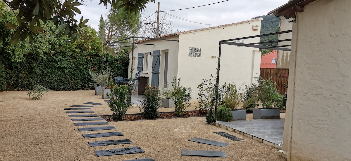 Oasis, tempat yang langka bagi pecinta alam di tengah - tengah kebun zaitun seluas 1 hektar antara Uzès dan desa Collias. Di rumah arsitek kecil yang terbuat dari Vers ini dengan teras pribadi yang benar - benar otonom, listrik tenaga surya dan lubang bor, Anda akan menemukan ketenangan dan ketenangan. Di pagi hari, burung merak akan datang menyambut Anda dan berharap hari Anda menyenangkan. Gardon dan Alzon di sebelah untuk berenang dan kolam renang yang digunakan bersama kami, akan menyegarkan Anda di hari - hari musim panas