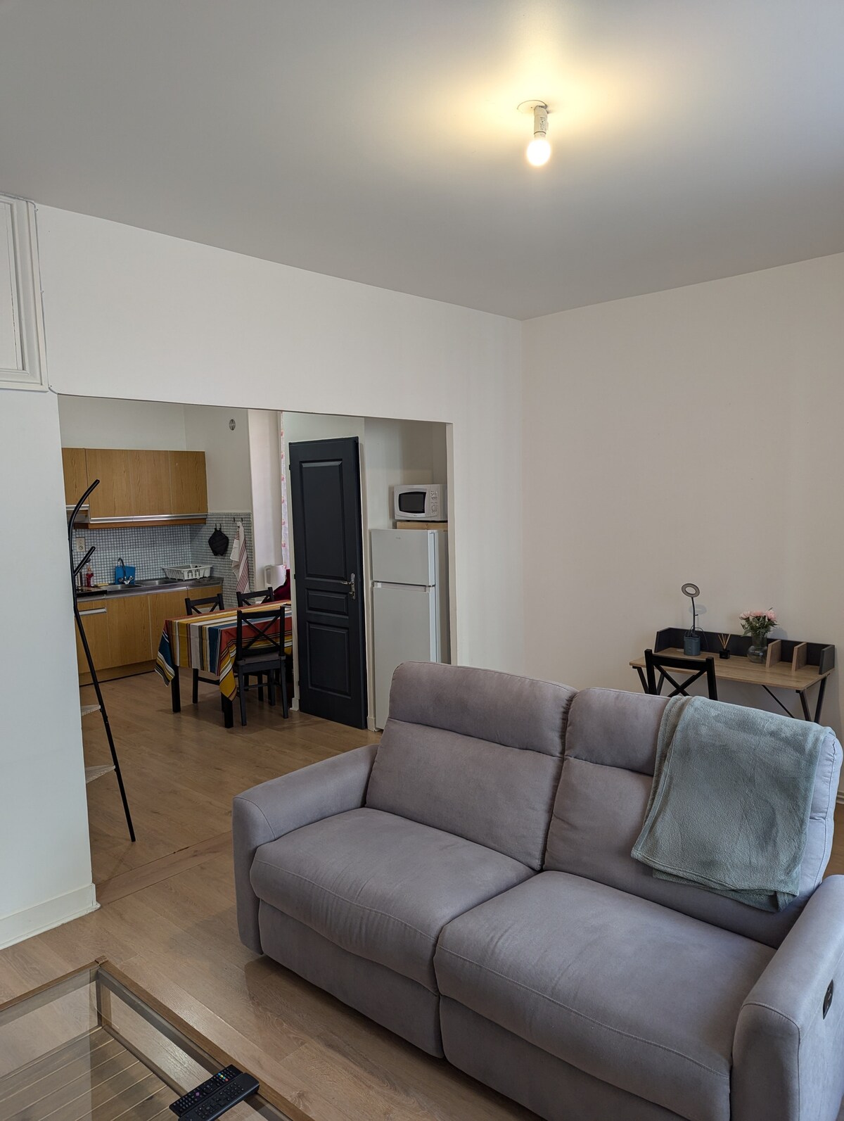 Rumah 65 m² di pusat Taman Alam Livradois Forez - Baru - Teras 15 m² dengan awning + 200 m² taman tertutup - Hewan peliharaan diterima (1) Lantai atas: 1 Kamar Tidur dengan Claustra - 15 m²- 1 Double bed 140 * 190 1 Kamar mandi Ruang Tamu: Dapur lengkap (Cookeo, split lid, tetapi berfungsi sempurna) Sofa Bed 2 Orang 140x190 Mesin raclette Seprai disediakan (Seprai, Kamar Mandi ) Tidak ada wifi TV - TNT SAT Perhatian Lantai lampu rendah naik/turun + langkah