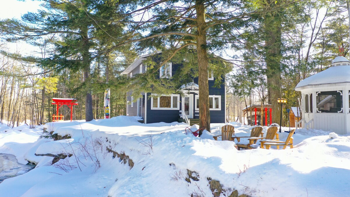 CITQ #299883 Kehidupan Desa Elegan Les Laurentides berjarak 45 menit perjalanan dari Montreal. Chalet seratus tahun dengan semua fasilitas modern saat ini (wifi berkecepatan tinggi tanpa batas (Fibe 1000), Nespresso (Vertuo), AC, perapian kayu bakar, dll.). Pemandangan panorama Danau Guindon dan akses berjalan kaki satu menit (termasuk perahu pedal dan kayak). Ketenangan di danau menanti Anda 5 menit dari St - Sauveur, lereng ski, dan seluncuran air.