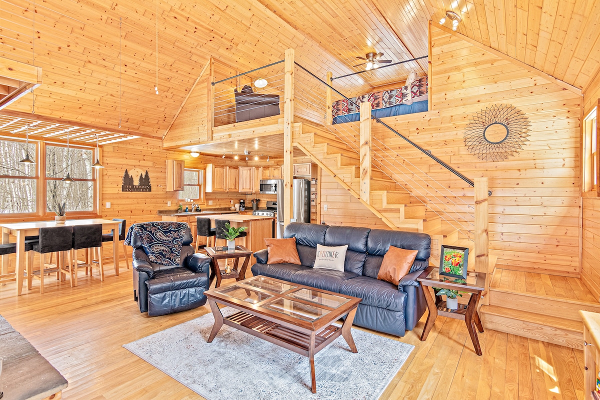 Bersantai di kabin 3BR, 2BA modern di 11 hektar hutan pribadi dengan bak mandi air panas 7 kursi, jacuzzi, tempat tidur baru, WiFi, AC/penghangat ruangan sentral, dan akses langsung ke jalur ATV, UTV & snowmobile. Hanya 1 mil dari bar, restoran, dan tempat hiburan luar ruangan McKenzie Lake. Nikmati peralatan baru, meja kolam renang, permainan, film, jalur pejalan kaki, lubang jagung, mesin cuci/pengering, tempat parkir tertutup, lubang api, dan banyak ruang untuk bersantai, menjelajahi alam, dan menciptakan kenangan yang tak terlupakan.