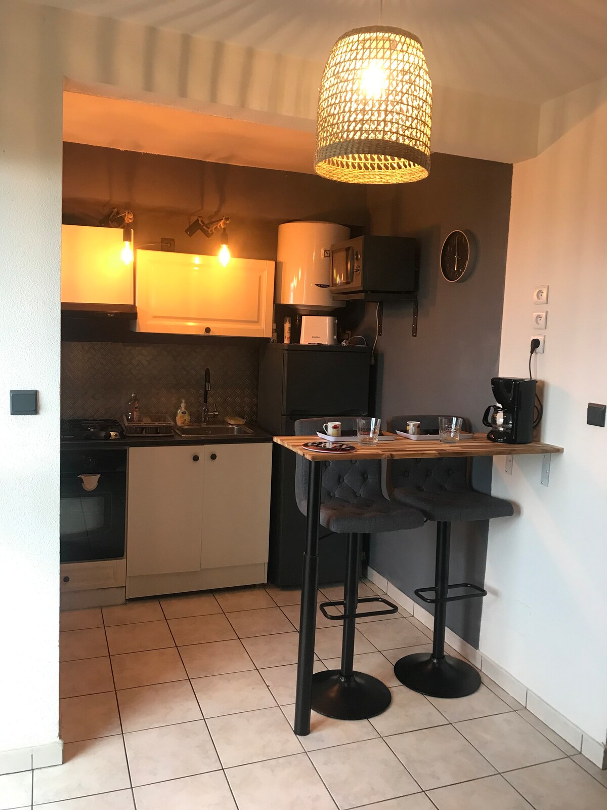 Studio terang yang luar biasa dengan semua kenyamanan yang Anda butuhkan (dapur dan peralatan makan, kamar mandi dan toilet, perlengkapan tempat tidur dan seprai, layar datar, akses internet, AC). Studio yang telah direnovasi ini berada di kawasan perumahan dan aman, tepat di tengah Saint - Denis, dapat menampung 2 orang. Tempat ini dekat dengan semua fasilitas. Stasiun Bus berjarak 5 menit berjalan kaki. Bandara R. Garros berjarak 10 menit berkendara. Tempat ini tidak memiliki tempat parkir tetapi parkir dapat dilakukan di dekatnya tanpa biaya.