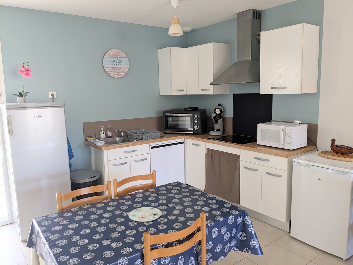 2 kamar yang bagus dengan teras di taman besar yang tidak terlewatkan, pantai di ujung jalan Kamar tidur dengan tempat tidur double, wc, kamar mandi dan ruang tamu (sofa bed) area dapur (air fryer, microwave, tassimo, kulkas, kompor) tv/wifi. parkir mobil tertutup (gerbang listrik) Supermarket di 100m atau Super U di 900m. sepeda tersedia € 10/sej untuk berjalan - jalan di sepanjang pantai. Seprai dan handuk termasuk. Untuk perokok, itu ada di teras :-) Terima kasih.