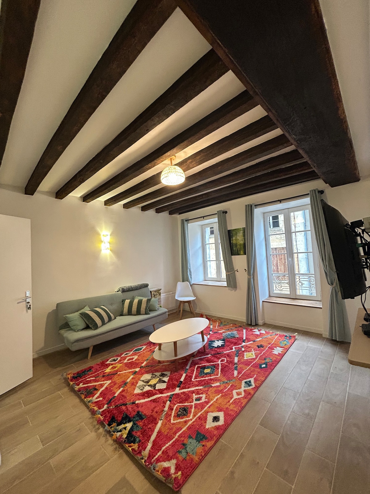 Di pusat desa , apartemen menawan ini terletak di lantai dasar Anda akan menemukan kamar mandi dengan toilet, kamar tidur, dapur lengkap, oven microwave, oven mini, pembuat kopi, perlengkapan mandi, seprai, dan tempat tidur sofa. Di gedung Percheron, di tengah Rémalard dengan toko - toko di dekatnya (toko roti, charcuterie, bar, restoran, ruang teh...), tetapi juga jalur hijau yang akan membuat Anda menemukan keindahan Perche. Mengunjungi: Bellême, La Perriére...