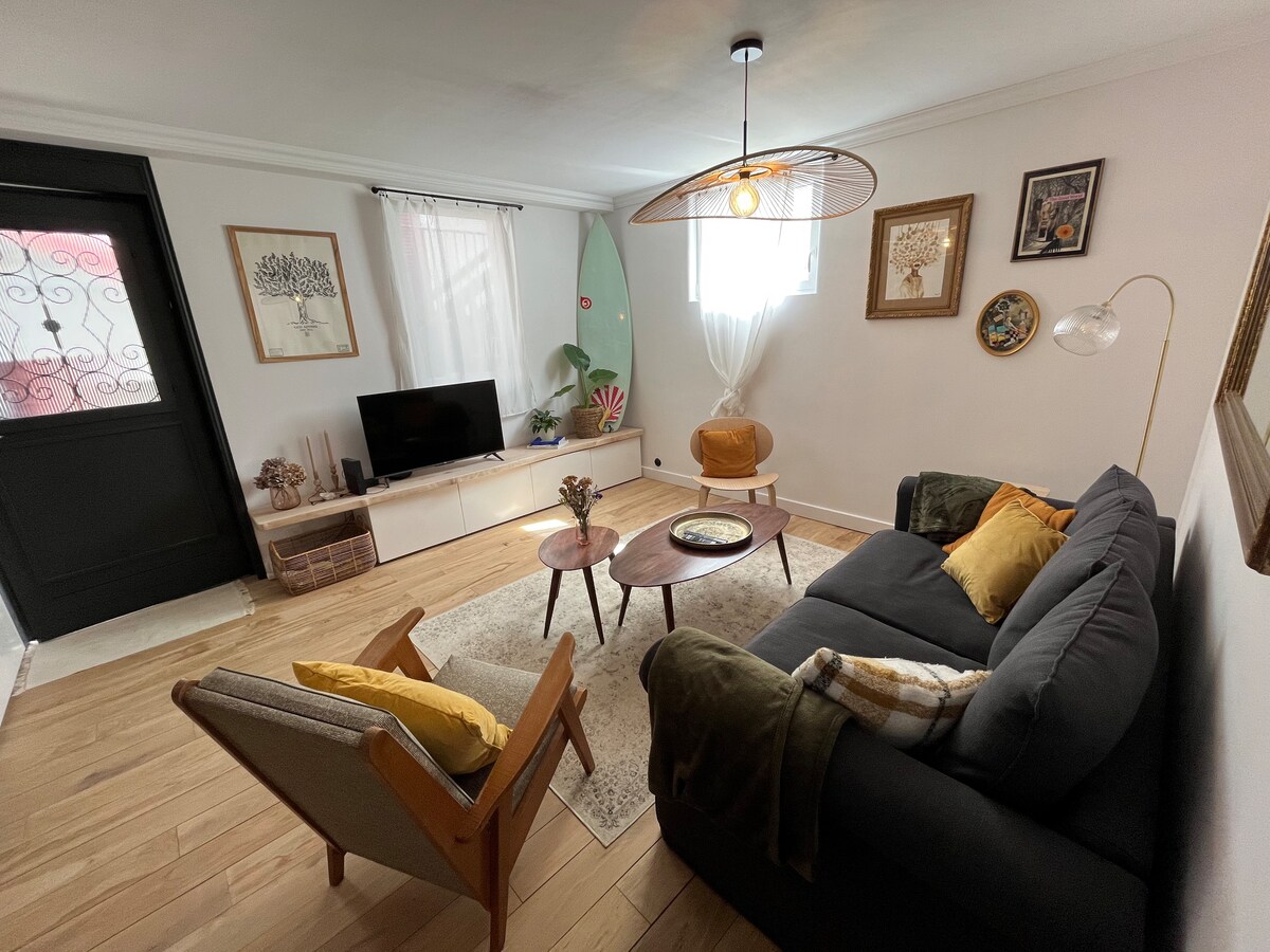 Apartemen 55 m2 di tengah kota, 50 m dari pantai dan di kaki jalan - jalan pejalan kaki St Jean de Luz. Parkir pribadi opsional. Tanyakan kepada saya! Sangat jelas, ideal untuk keluarga (maksimal 5 orang) dan didekorasi dengan cita rasa. Terdiri dari ruang tamu, 2 kamar tidur yang tenang, kamar mandi dengan pancuran dan memiliki balkon yang bagus di bawah sinar matahari. Wifi berlapis ganda - Mencuci mesin - Mesin cuci piring - Pemanas - Nespresso Langkah - langkah kebersihan dan kebersihan tambahan telah dilakukan untuk keselamatan Anda
