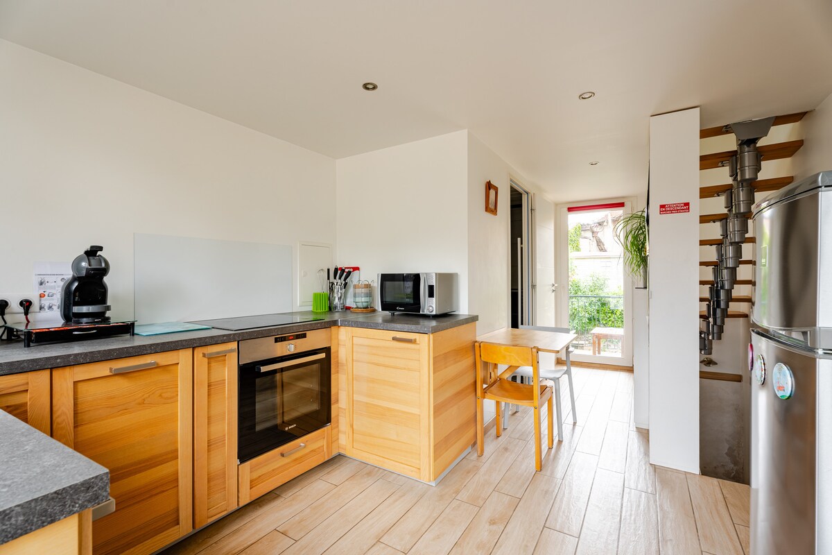 Di properti pribadi besar yang aman dengan gerbang dan parkir, Anda akan menemukan basis yang sempurna. Studio yang indah seluas 32 m2 sangat nyaman. Terletak di daerah yang tenang dan dekat dengan jalan utama. Anda akan mendapatkan tempat tidur 2 orang yang bagus, kasur baru, selimut, dan bantal yang nyaman. Seprai dan handuk disediakan, semuanya akan siap menyambut Anda. Studio ini dilengkapi dengan TV /wifi+ duo raclette + perangkat yang diperlukan untuk memasak.