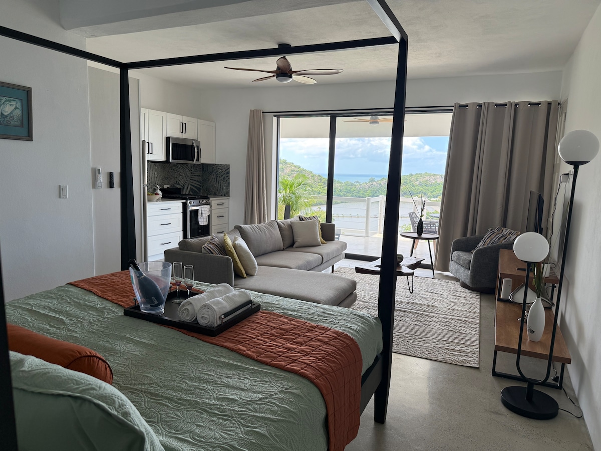 Selamat datang di apartemen studio ber - AC kami yang luas dan menarik! 🏝️ Manjakan diri dengan kenyamanan dengan tempat tidur berukuran Queen yang empuk, sofa 2 tempat duduk yang nyaman, dan meja makan untuk dua orang. 🛏️Siapkan makanan lezat di dapur lengkap, lengkap dengan kompor/oven ukuran penuh, kulkas, pemanggang roti, dan ketel. 🍳 Segarkan diri di pancuran kamar mandi modern yang luas. 🚿 Di luar - nikmati matahari terbenam yang menakjubkan dari teras ubin yang menghadap taman rimbun dan pemandangan laut. 🌅