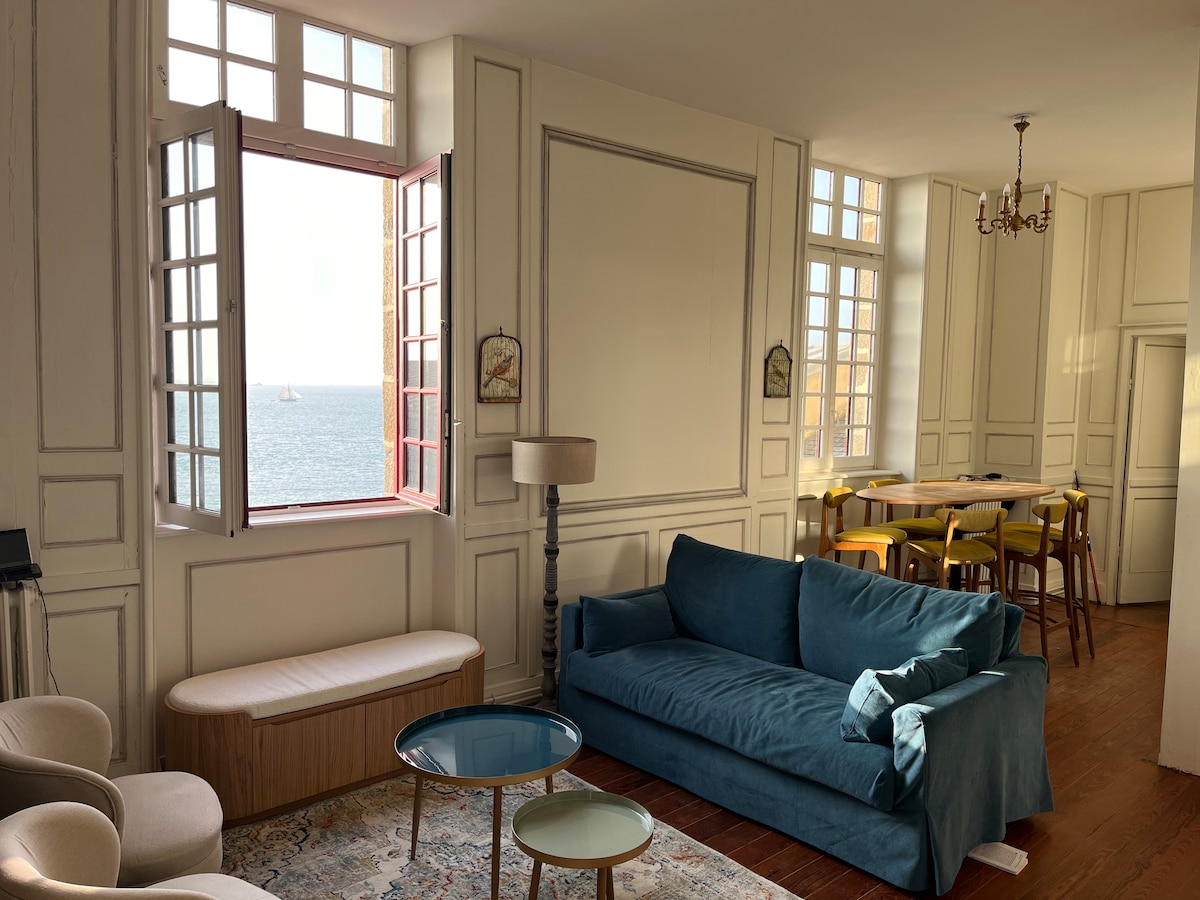 Appartement avec vue imprenable sur la baie de Saint Malo, les îles et les forts Vauban. Un panorama époustouflant sur les hauteurs d'intra-muros. Idéalement situé au coeur de la cité corsaire dans une des ruelles les plus mythiques, fascinante car chargée d'histoire.