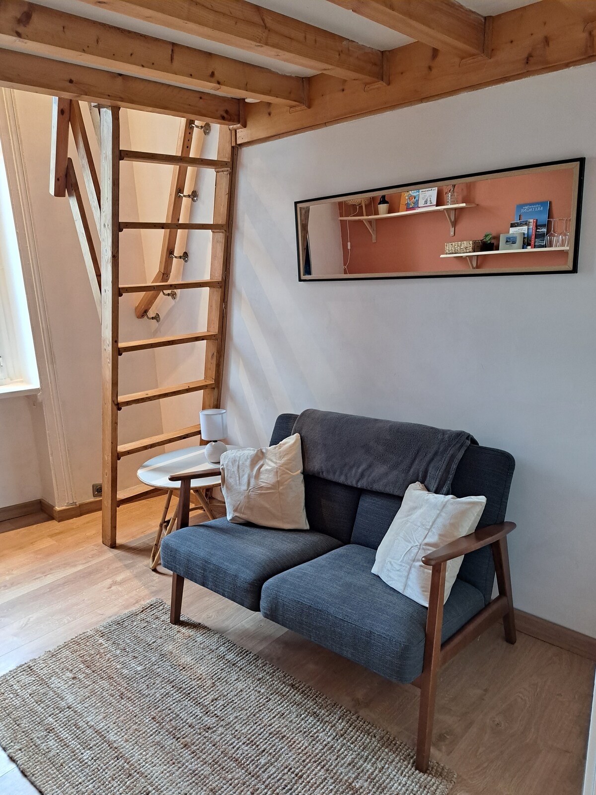 Large and bright apartment of 42 m², under the roof, in a quiet street in the centre of St-Servan. Ideally located, "close to everything", between the sea (200 m from the beaches), shops and restaurants (100 m from the centre) and 500 m from the town centre. Completely refurbished in early 2021. Mezannine with a bed of 160. Fully equipped kitchen. Independent bathroom (shower). It has all the facilities and comfort for an unforgettable stay in the Malouin country. Easy and free parking.