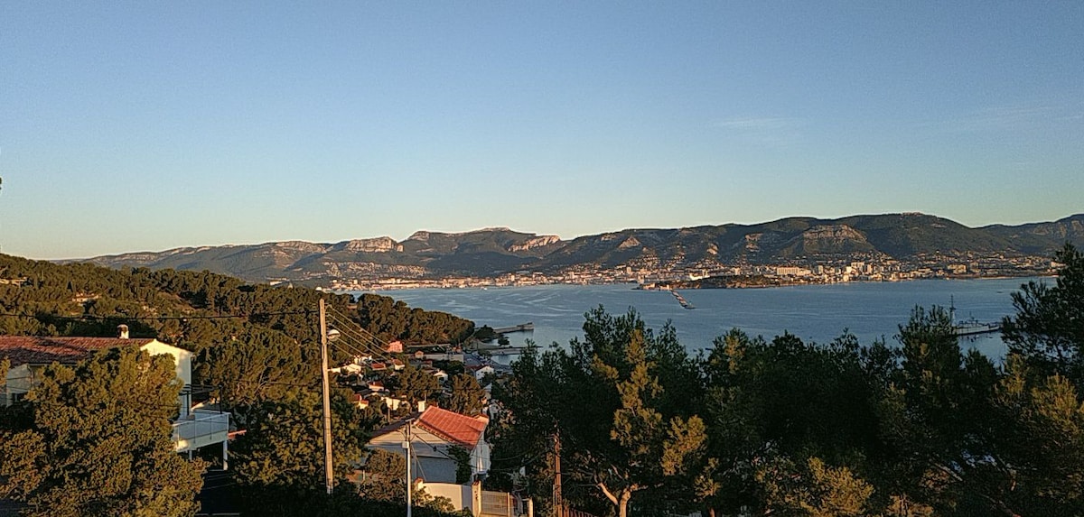 Rumah nelayan yang telah direnovasi di semenanjung Saint - Mandrier, pesona mutlak menghadap laut terbuka lebar tepat di atas pantai La Coudoulière (kerikil) dalam jarak berjalan kaki, di Corniche d 'Or. Anda tidak akan bosan dengan pemandangan dari sarapan hingga matahari terbenam. Lingkungan tinggal yang tenang (pesta dilarang)- Jalur pantai, snorkeling, klub selam, jalur sepeda gunung, antar jemput perahu ke Toulon. Pasar Provencal dan semua toko dalam jarak berjalan kaki di pelabuhan. Koneksi Porquerolles di musim panas.