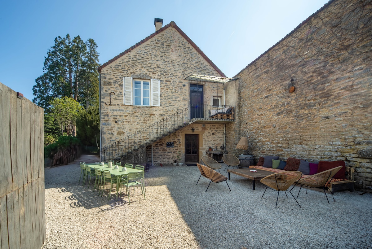 Rumah Winegrower, direnovasi pada tahun 2021, di jantung desa wine, terletak di rute anggur Côte Chalonnaise. Pondok seluas 80 m2 dengan halaman dalam bersama di mana tersedia furnitur taman, akses ke barbekyu, meja ping pong, serta kolam renang yang dipanaskan (Mei hingga Oktober tergantung cuaca). Menampung 4 orang. Dilengkapi dapur, ruang TV dan 2 kamar tidur termasuk 1 kamar mandi. Semua fasilitas dan aktivitas (bersepeda, uji rasa, ...) di dekatnya
