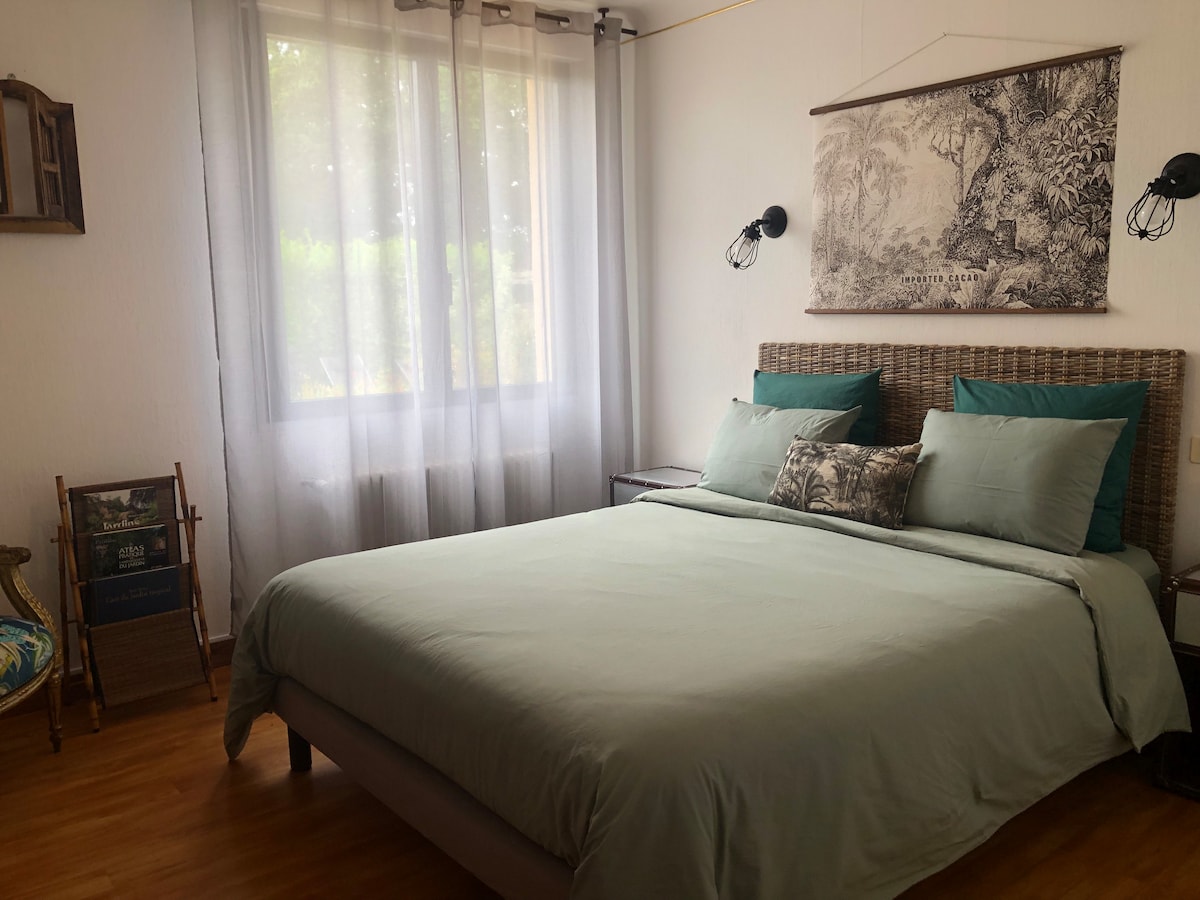 Lebih baik dari sekadar kamar: ruang yang benar - benar independen dengan 2 kamar tidur, kamar mandi, toilet, area makan. Dapur baru tempat Anda bisa menyiapkan makanan.. Ideal untuk mengisi ulang baterai Anda, untuk singgah, untuk perjalanan bisnis, olahraga, atau keluarga, jangan ragu untuk menghubungi saya. Handuk disediakan jika Anda membutuhkannya. Anda harus bertanya sebelum Anda check-in. Amankan halaman untuk kendaraan Anda.