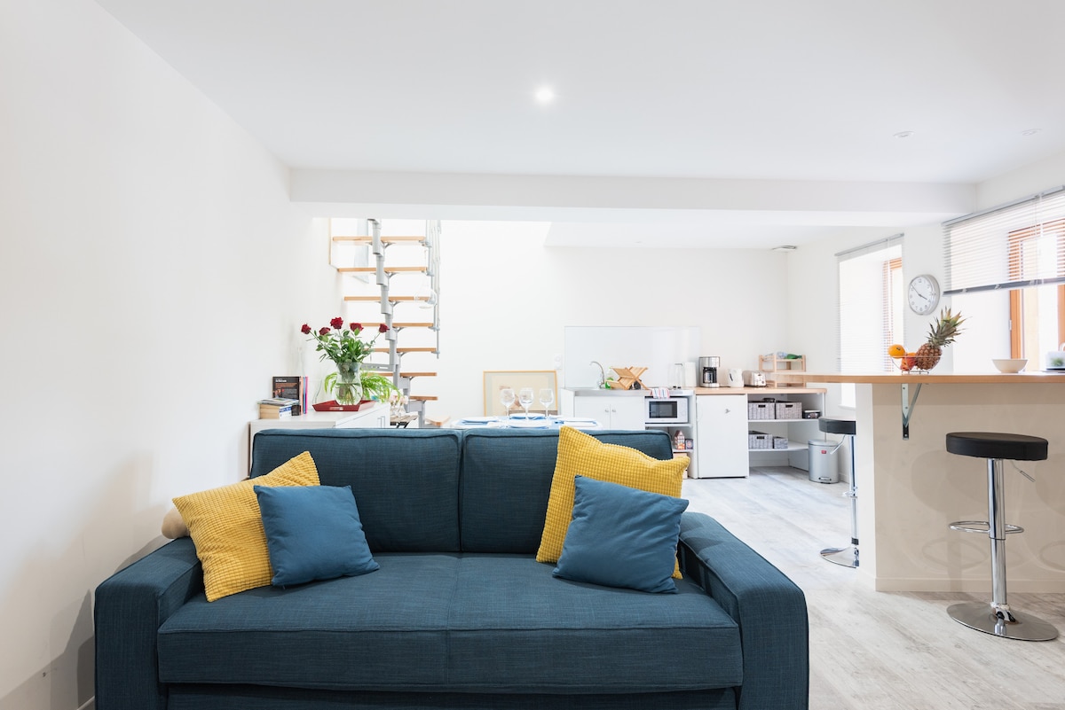 Seluruh apartemen berukuran 70 m² dengan ruang tamu besar berukuran 35 m², kamar tidur besar ber-AC dengan ruang ganti di lantai atas. Tempat ini menawarkan semua kenyamanan termasuk tempat parkir. Di pusat kota, toko-toko berjarak 1 menit berjalan kaki. Terletak 10 menit berkendara dari stasiun kereta SNCF dan pintu keluar jalan raya.