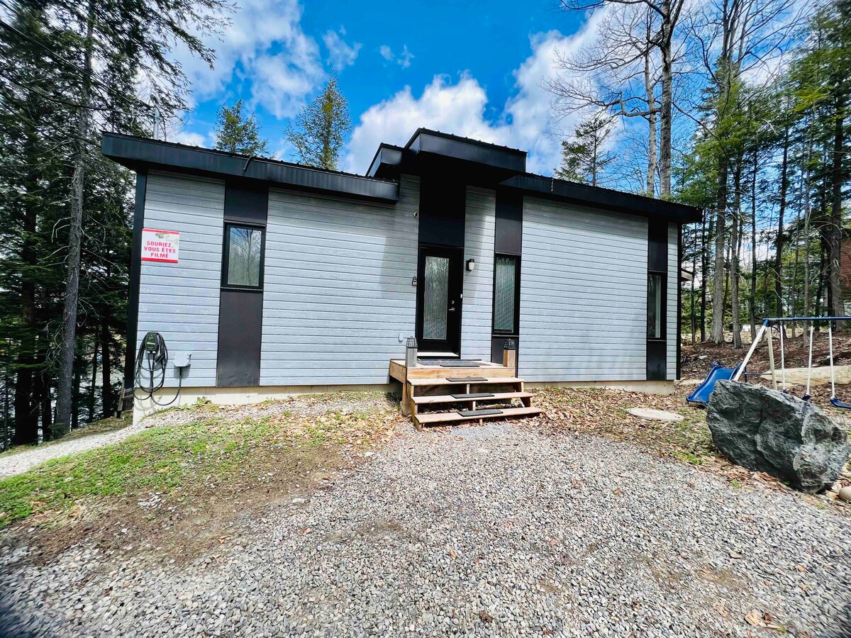 Chalet hutan Nordik kami sangat cocok untuk menghabiskan waktu berkualitas sebagai pasangan (atau dengan anak - anak), atau untuk retret pekerjaan (dengan WiFi berkecepatan tinggi). Interior kayunya hangat dan nyaman. Jendela dengan ketinggian penuh menawarkan pemandangan menakjubkan ke arah lembah berhutan. Dapur konsep terbuka dan ruang tamu membuat Anda tetap dalam percakapan saat memasak. Jika Anda lebih suka memasak di luar, ada perapian dengan pemanggang dan meja makan luar ruangan. Hanya 70 menit berkendara dari Montreal. Danau ini berjarak 25 menit berjalan kaki jika Anda parkir di dekatnya.