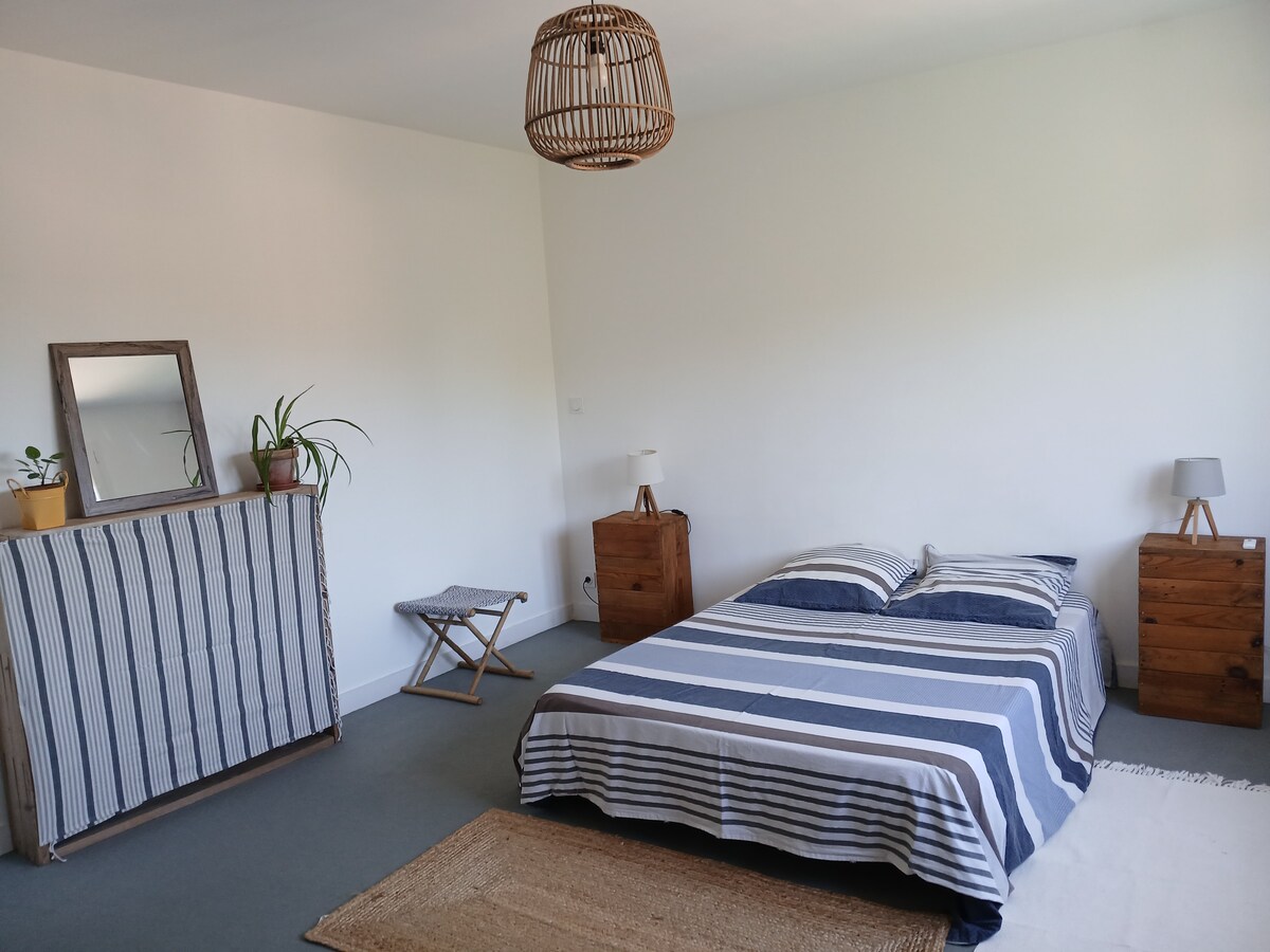 Kamar yang kami atur khusus untuk tuan rumah kami sangat menyenangkan, sederhana namun nyaman. Tempat tidur double, kamar mandi dengan shower walk - in, dan toilet pribadi di lantai satu rumah biru. Tema tepi pantai sesuai dengan lokasi kami. Sarapan sederhana ditawarkan ekstra dan kemungkinan sarapan siang untuk hari Minggu di pagi hari. Meja d 'hôtes juga dimungkinkan di malam hari pada akhir pekan.