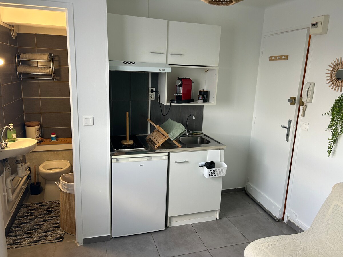 Selamat datang di Le Clair de Ville, kepompong 22 m2 yang cerah yang terletak di pusat Rodez, dekat dengan semua fasilitas. Apartemen bergaya ini, bermandikan cahaya dan dihiasi warna putih yang menenangkan, menawarkan pemandangan Katedral Notre Dame yang megah. Ideal untuk 1-2 orang - sofa Italia berkualitas yang dapat dikonversi menjadi tempat tidur (tempat tidur disiapkan untuk kedatangan tamu), TV. Anda akan menikmati lokasi istimewa, tenang, saat berada di tengah-tengah animasi Ruthenia.