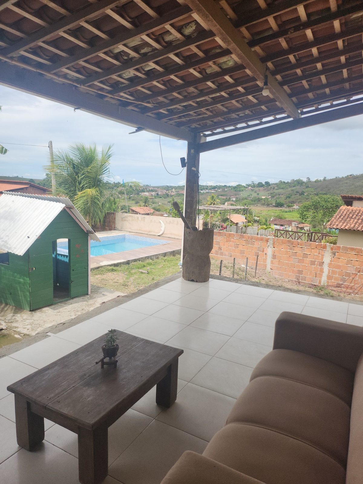 Rumah yang menyenangkan dan berventilasi, dengan ruang makan dan ruang tamu, balkon, 4 kamar tidur dengan suiis, dapur lengkap, 7 kamar mandi, barbekyu, lapangan sepak bola, api unggun, taman bermain, dan area memancing. Rumah ini juga memiliki properti keamanan, wifi yang tersedia, dan penghuni rumahan di properti tersebut. Saya menyewa fraternisasi, Ulang Tahun, retret, kamp gereja dan untuk penggunaan keluarga. Jaraknya 4 km dari tengah kota.