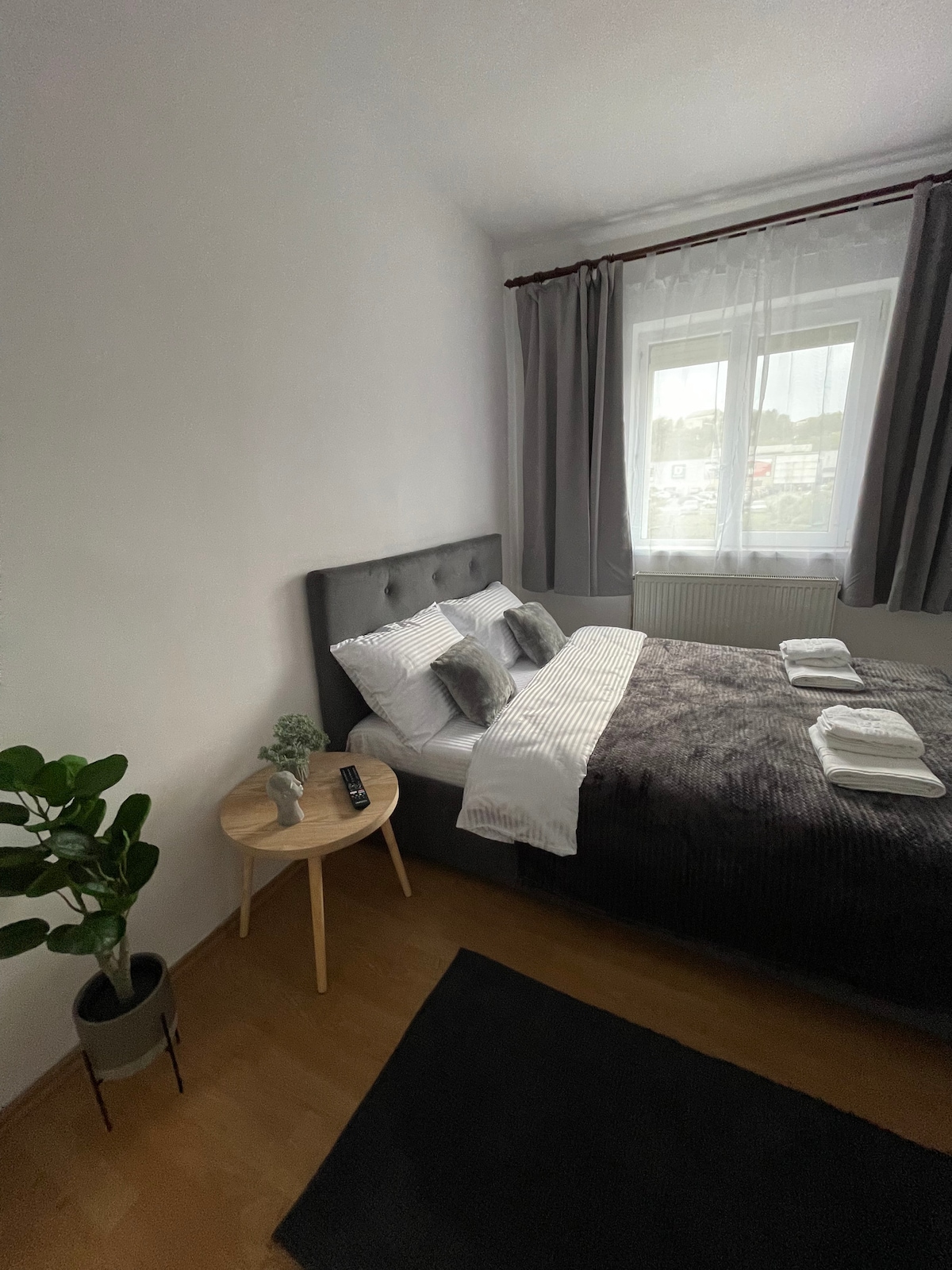 Ofer un apartament confortabil, intr-o zona linistita, usor accesibila, ideala cuplurilor sau familiilor cu maxim 2 copii. Blocul este situat intr-o curte privata, cu loc de parcare inclus, ideal pentru relaxare. In apropiere este Kaufland si statia Lukoil , iar vis-avi de apartament gasiti 1 parc amenajat cu teren de fotbal . Accesul oaspeților se face personal. Cheia se afla în loocker-ul de lângă ușă, iar parola se primește în ziua check in ului