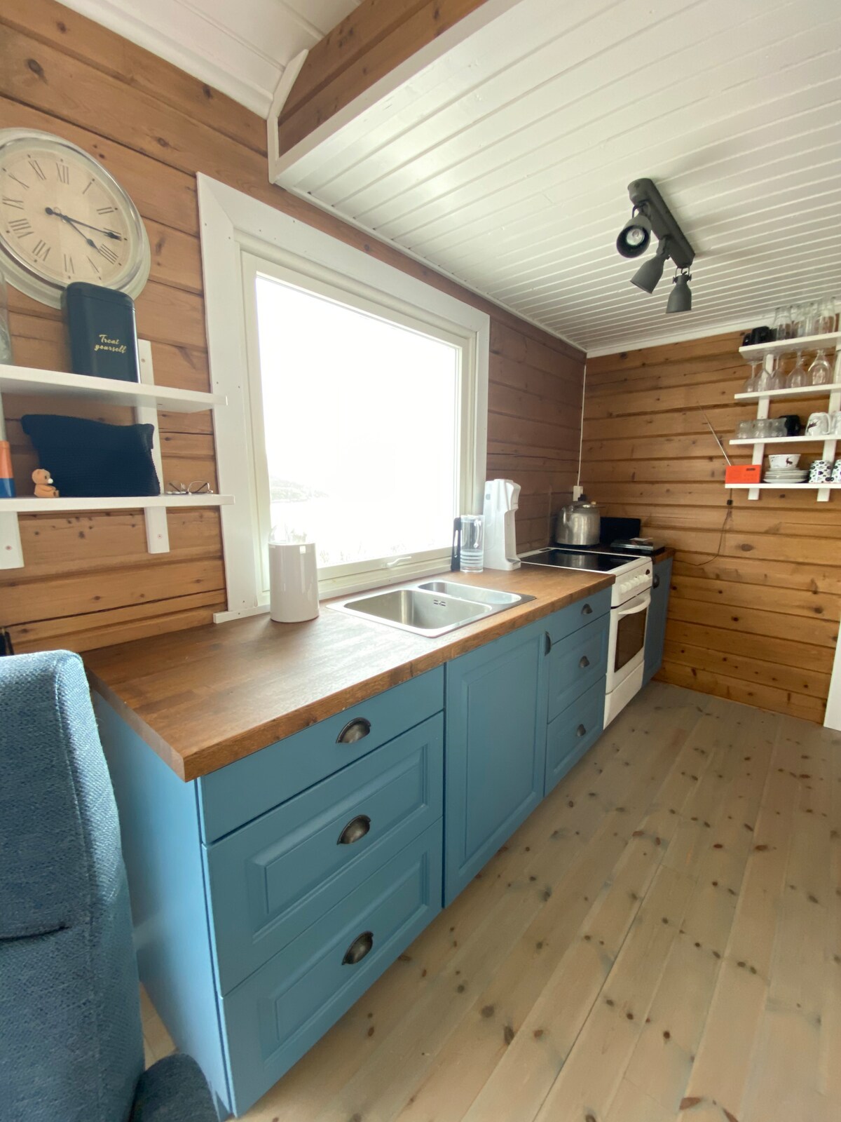 Nikmati pemandangan indah, kecepatan rendah, dan standar tinggi bersama keluarga dan teman - teman Anda. Di ruang tamu luar ruangan Anda bisa menikmati suasana luar ruangan meskipun cuaca tidak boleh berada di sisinya. Di tepi laut Anda bisa pergi memancing, berenang, dan menikmati momen ini. Di sini denyut jantung beristirahat, momen menyenangkan, dan waktu berkualitas dijamin terjamin. Kabin tidak memiliki listrik dan air yang mengalir, tetapi fasilitas yang ditingkatkan sehingga ada air 12V, 230v, panas dan dingin di keran. Kompor dan oven menggunakan gas. Min 22 tahun untuk disewakan.