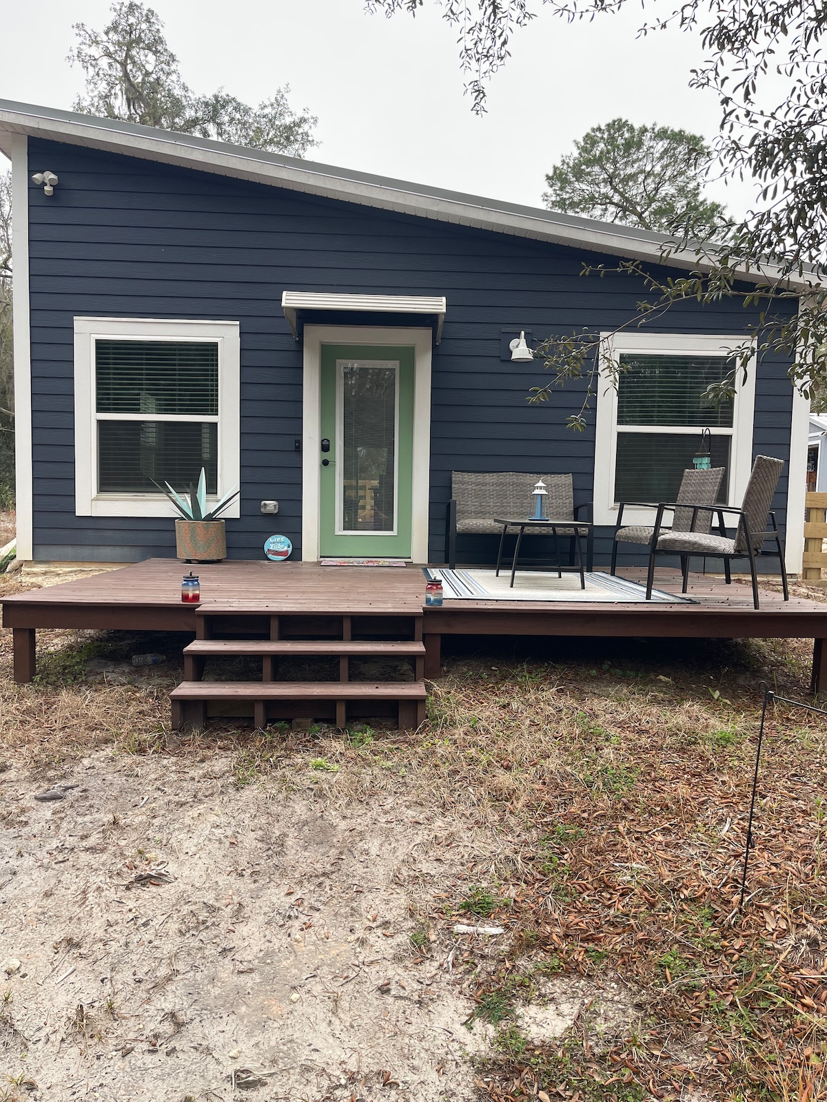 Nikmati pemandangan danau yang menakjubkan sambil menghirup kopi pagi Anda di dek belakang. Ada banyak pilihan mendayung di sini di Sand Lake yang diberi makan musim semi. Tuan rumah menawarkan perahu dayung, kano, dan papan dayung untuk hiburan Anda. Berlatih yoga di dek pribadi Anda sendiri, memancing dari dermaga, atau menatap bintang di sekitar api unggun setiap malam. Temukan Florida Springs dan pantai di dekatnya dalam jarak 30 - 60 menit. Pondok seluas 800 kaki persegi ini terletak di tengah - tengah antara Gainesville & Saint Augustine. Netflix | Hulu | Wifi | BBQ