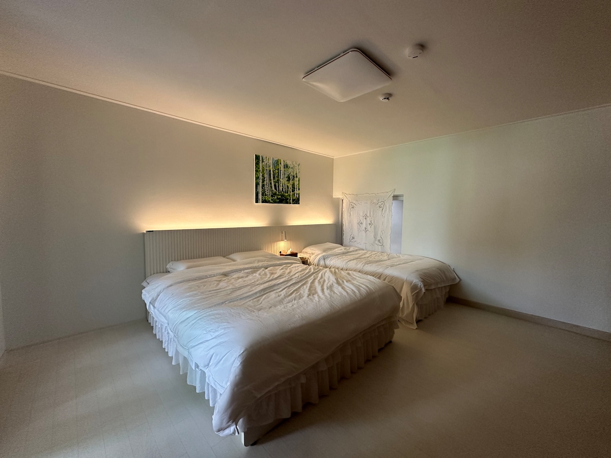 Lantai tiga guesthouse Dalcume, yang terletak di antara tengah dan tengah kota, memiliki kamar ondol, kamar tidur, ruang tamu, dan dapur sederhana. Ruang kiri cocok untuk perjalanan keluarga atau berkumpul bersama keluarga. Di sisi kanan terdapat kamar 4 orang dengan dua tempat tidur single dan satu tempat tidur susun. Toilet. Terasnya bersama - sama. Tempat ini memiliki dua toilet, dapur kecil,