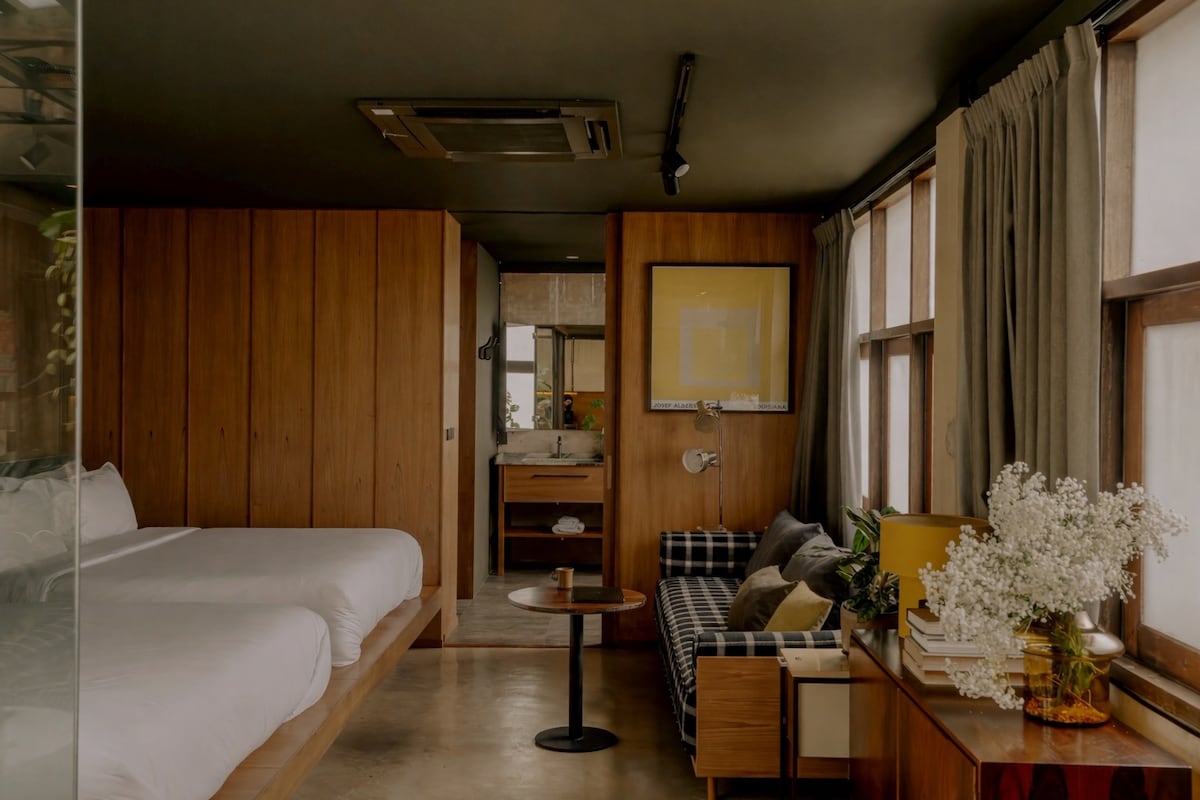 ☆ Selamat datang di tempat peristirahatan suite kreatif Anda di Bangkok ☆ Menginaplah di suite yang dirancang dengan cermat yang menghadap ke Kanal Ong Ang yang damai, hanya 3 menit berjalan kaki dari MRT Sam Yot. Ruang yang tenang ini memadukan pesona vintage dengan desain minimalis dan modern. Dibuat oleh keluarga arsitek kami, Poco House terletak tepat di atas kafe favorit lokal kami, Piccolo Vicolo. Direnovasi dengan apik dengan kayu hangat, tekstur beton, dan tanaman hijau, tempat ini merupakan tempat liburan yang tenang di jantung distrik Phra Nakhon yang bersejarah di Bangkok.