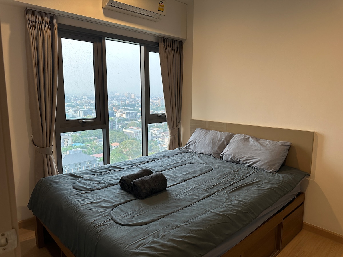 "Ndee adalah tuan rumah yang luar biasa. Tempat ini memiliki semua yang saya butuhkan untuk masa inap yang menyenangkan. Kolam renang atap super keren & pemandangan gym sangat bagus" ☆ HOSTELADAN Airbnb sejak 2015 Penjemputan bandara❤ gratis saat check-in! ❤ Meja Kerja ❤ Pemandangan Luar Biasa ❤ Kolam renang infiniti & pusat kebugaran di atap ❤ 1 Tempat Tidur/1 Kamar Mandi ❤ Mesin cuci ❤ Tempat Tinggal Mewah ☆ Skytrain Ekkamai (5 menit) ☆ Pusat perbelanjaan Ekkamai Gateway (3 menit) ☆ Golf Driving Range (10 menit) ☆ Benchasiri Park (2 stasiun) ☆ Distrik lampu merah, Nana & Soi Cowboy (4 stasiun)