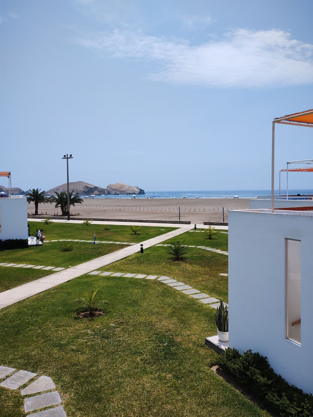 Pondok tepi laut (km 84,4 Panamericana Sur). 1000m² area hijau, kolam renang dan pemanggang yang dipanaskan. 6 kamar tidur (3 kamar mandi dalam): 5 dengan 2 tempat tidur double, 1 dengan tempat tidur double dan tempat tidur bayi; hingga 20 orang. Meja tenis, foosball, internet, dan TV. Kondominium dengan laguna alami, ideal untuk mengamati burung, permainan, pasar, keamanan 24/7 (restoran musim panas). Pengiriman Wong/Vivanda. Akses langsung ke pantai (ombak kuat). 5 menit dari Totoritas dan La Ensenada, 10 menit dari Boulevard de Asia dan 30 menit dari Calango dan Azpitia.