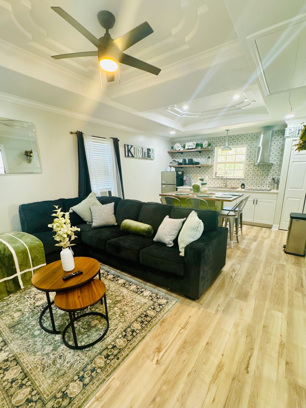 2 Kamar tidur, 2 kamar mandi - 845 kaki persegi. Baru direnovasi! Apartemen modern, 1,5 mil dari Pusat Kota dan Riverwalk. Seprai berkualitas hotel! Dilengkapi penuh (semua perlengkapan dasar dan banyak lagi), mesin cuci/pengering lengkap, dapur, dan teras penggunaan khusus tamu pribadi dengan pemanggang gas dan lounge luar ruangan pribadi dan bak mandi air panas 5 tempat duduk. Check - in mandiri, pintu masuk tanpa kunci, wifi, smart tv dengan rencana Roku dan Hulu Live No Commercials. Diaktifkan untuk Netflix, HBO Max, Paramount+, Disney+, dll. Airplay. Termasuk wifi berkecepatan tinggi.