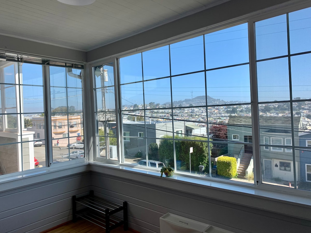 Bersantailah di ruang berjemur dengan pemandangan kota yang jauh dari keramaian di lantai atas dengan dekorasi segar ini. Terletak tepat di perbatasan San Francisco, tempat yang cerah ini memiliki halaman belakang dengan tempat duduk untuk makan malam di luar ruangan di samping pohon lemon yang harum. RUANG TAMU PRIBADI: Wi - Fi cepat, TV pintar 49", Antena (saluran lokal), satu tempat tidur sofa, dan perabotan baru. DAPUR PRIBADI: Kompor , Oven, Microwave, Kulkas/Pembeku, mesin cuci piring, peralatan makan, gelas/mug, piring, pembuat kopi (termasuk kopi). Pintu geser terbuka ke halaman belakang taman. KAMAR TIDUR 1 : Satu tempat tidur ukuran penuh dan satu tempat tidur twin. meja komputer, nuansa gelap kamar. Tempat yang tenang untuk bekerja atau sekadar menerima email. REDROOM 2 : Tempat tidur queen dengan pemandangan kota yang luar biasa. KAMAR MANDI PRIBADI: Bak mandi, shower hujan. manjakan diri Anda! KAMAR MASUK: Nikmati Pemandangan Kota yang Luar Biasa HALAMAN BELAKANG TAMAN: Meja makan di luar ruangan dengan payung menikmati cuaca indah di San Francisco. Tamu akan bisa mengakses seluruh lantai atas, termasuk halaman belakang. Satu ruang pengepakan mobil di depan rumah. Tuan rumah Anda akan hadir di properti dan siap untuk segala keperluan Anda selama menginap. Properti ini berjarak berjalan kaki dari Daly City BART untuk akses mudah ke kota dan kurang dari 10 menit berkendara dari Harding Park Golf Course. 3 pusat perbelanjaan yang berbeda berjarak beberapa menit, menawarkan restoran, gerai kopi, dan pusat perbelanjaan. Jarak dari bandara internasional San Francisco 12 menit dengan mobil tanpa macet. Jelajahi Kota dengan perjalanan 15 menit dari stasiun Daly City BART ke pusat kota San Francisco. Transportasi umum dan UBER/LYFT sangat mudah sehingga tamu jarang menyewa mobil! Rumah berada di lantai 3 tanpa lift, jadi mungkin sulit bagi lansia atau penyandang disabilitas. Pintu masuk ke rumah berada di bawah pengawasan untuk keamanan dan keselamatan tambahan Anda