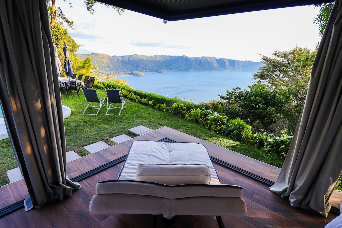 Liburan Mewah Modern menghadap Danau Coatepeque