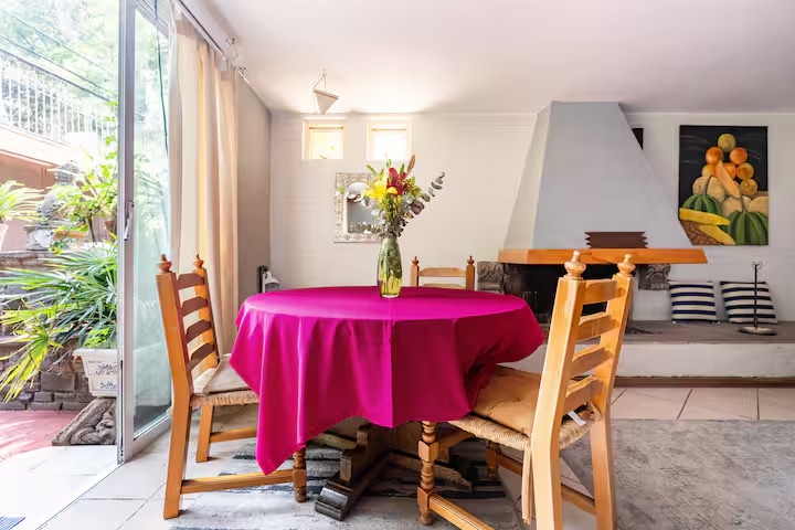 Selamat datang di Coyoacán! Loteng besar seluas 120 m2 yang terletak hanya 5 menit berjalan kaki dari pusat Coyoacán. Jalani pengalaman tempat terbuka yang tenang dan cerah ini, ideal untuk beristirahat atau bekerja dan didekorasi dengan benda - benda yang penuh dengan cerita. Loteng ini berlokasi di lantai tiga Casa Mavi, bekas pabrik yang direnovasi untuk menciptakan tempat menawan yang membuatnya unik. Tempat ini memiliki teras untuk digunakan bersama. Dengan opsi untuk tamu ketiga. Wifi 200 megabyte.