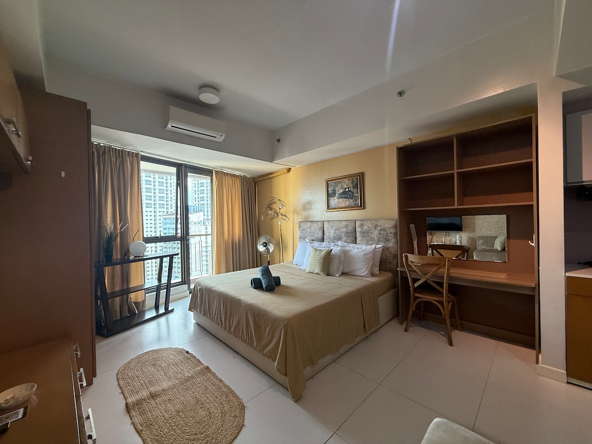 MABUHAY! Baik Anda sedang melakukan perjalanan bisnis, mengunjungi keluarga, atau bepergian melalui Asia, tak perlu ragu lagi. Yang dulunya unit kondominium satu kamar tidur kini telah diubah menjadi studio besar yang luas (empat puluh delapan meter persegi!). Terletak di salah satu bangunan hunian tertinggi di Filipina, tempat ini bisa menjadi rumah Anda saat jauh dari rumah. Jika tanggal yang Anda pilih sudah terpesan, Anda juga bisa mengunjungi studio kami yang dikelola di bawah profil saya!