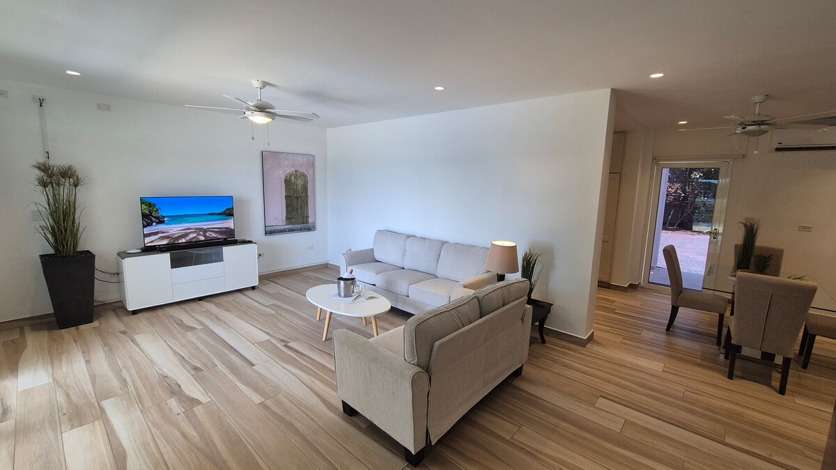 Properti perumahan kami yang megah terletak langsung di pantai pasir pribadi yang padat; sangat aman untuk berenang. Ada pemandangan laut dari setiap kamar. Rumah ini luas dengan semua fasilitas yang tersedia untuk tamu kami. Teras dan teras layar yang besar menawarkan ruang tamu luar ruangan untuk menikmati suara laut dan pemandangan pantai dan air yang spektakuler. Properti seluas 3/4 hektar ini dihiasi dengan tanaman dan bunga tropis. Kami menawarkan komunitas yang aman dan tertutup dalam suasana yang tenang.
