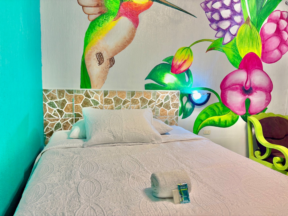 Tempat bergaya ini dekat dengan segala hal penting kami berlokasi sangat baik di jalan Pan American di pintu masuk utama Catarina San Marcos dekat restoran dan pom bensin dan pom bensin 24 jam, tempat super aman dan pribadi, kami memiliki AC untuk semua kamar kami