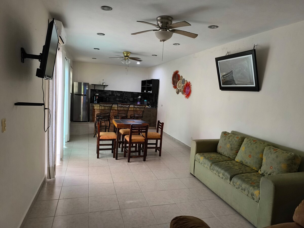 Studio kami berlokasi di pusat kota Cozumel, satu blok dari laut. Kami memiliki 2 double bed, sofa bed, kulkas kecil, electric boiler untuk air panas, AC, dapur kecil dengan kompor kecil dan internet berkecepatan tinggi. Beberapa langkah jauhnya kami memiliki restoran, toko selam, perusahaan penyewaan, penatu, pusat kebugaran, dan rumah sakit. Jadi Anda akan merasa sangat nyaman menginap di tempat kami. Jika Anda memiliki pertanyaan, kirimkan pesan kepada kami.