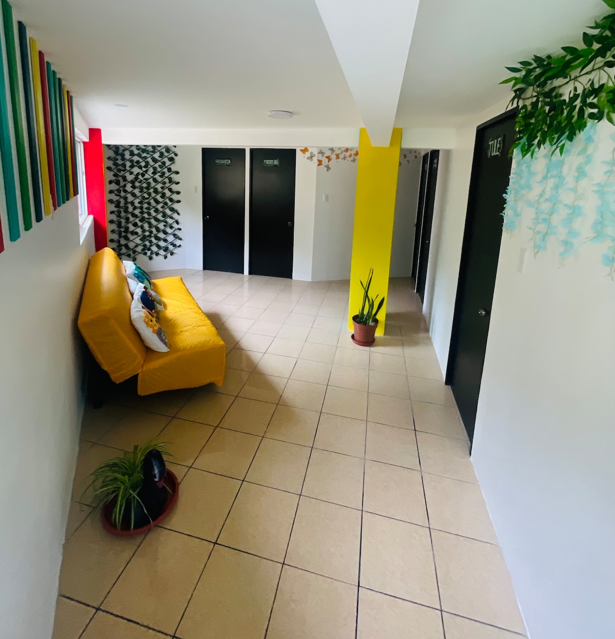 Amplia recámara con terraza privada y acceso exclusivo. Dentro de una antigua fábrica, en donde existen otros lofts. A 10 minutos (2 km) en transporte público o en auto del zócalo. A 25 min caminando de la zona turística. Una Cama Queen y un sofa cama. 28 m2 interiores + 37 m2 exteriores.